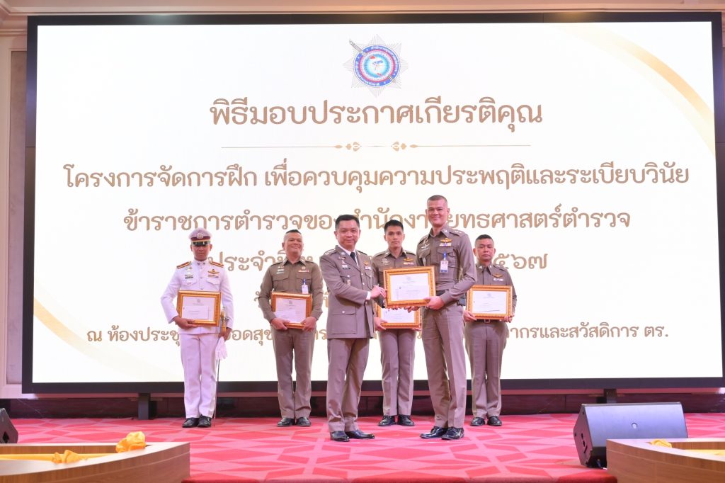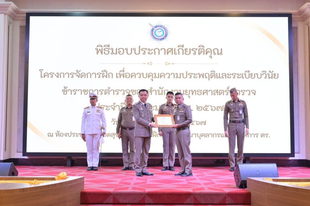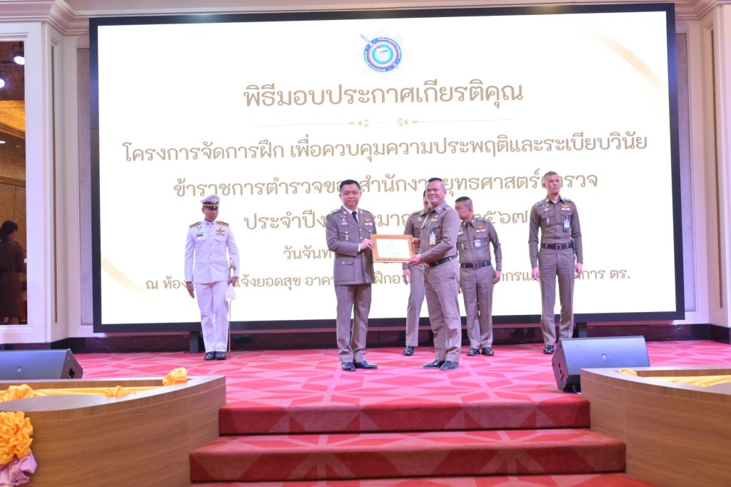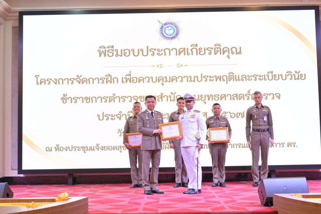 พิธีมอบประกาศเกียรติคุณการจัดประกวดการฝึกตามโครงการจัดการฝึกเพื่อควบคุมความประพฤติและระเบียบวินัยข้าราชการตำรวจของสำนักงานยุทธศาสตร์ตำรวจ ประจำปีงบประมาณ พ.ศ. 2567