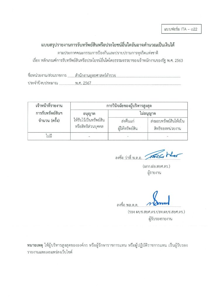รายงานการรับทรัพย์สินหรือผลประโยชน์อื่นใดโดยธรรมจรรยาสำหรับหน่วยงาน ตามมาตรา 128
